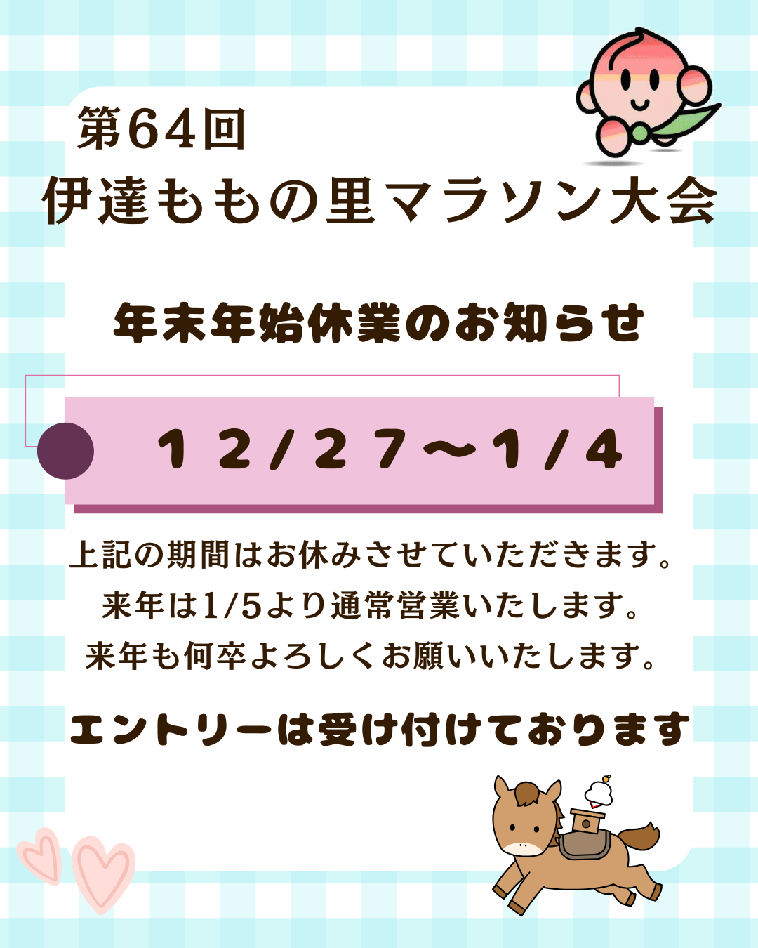12月27日(土)~1月4日(日)までお休みいたします。 来年は1月5日(月)より通常営業いたします。